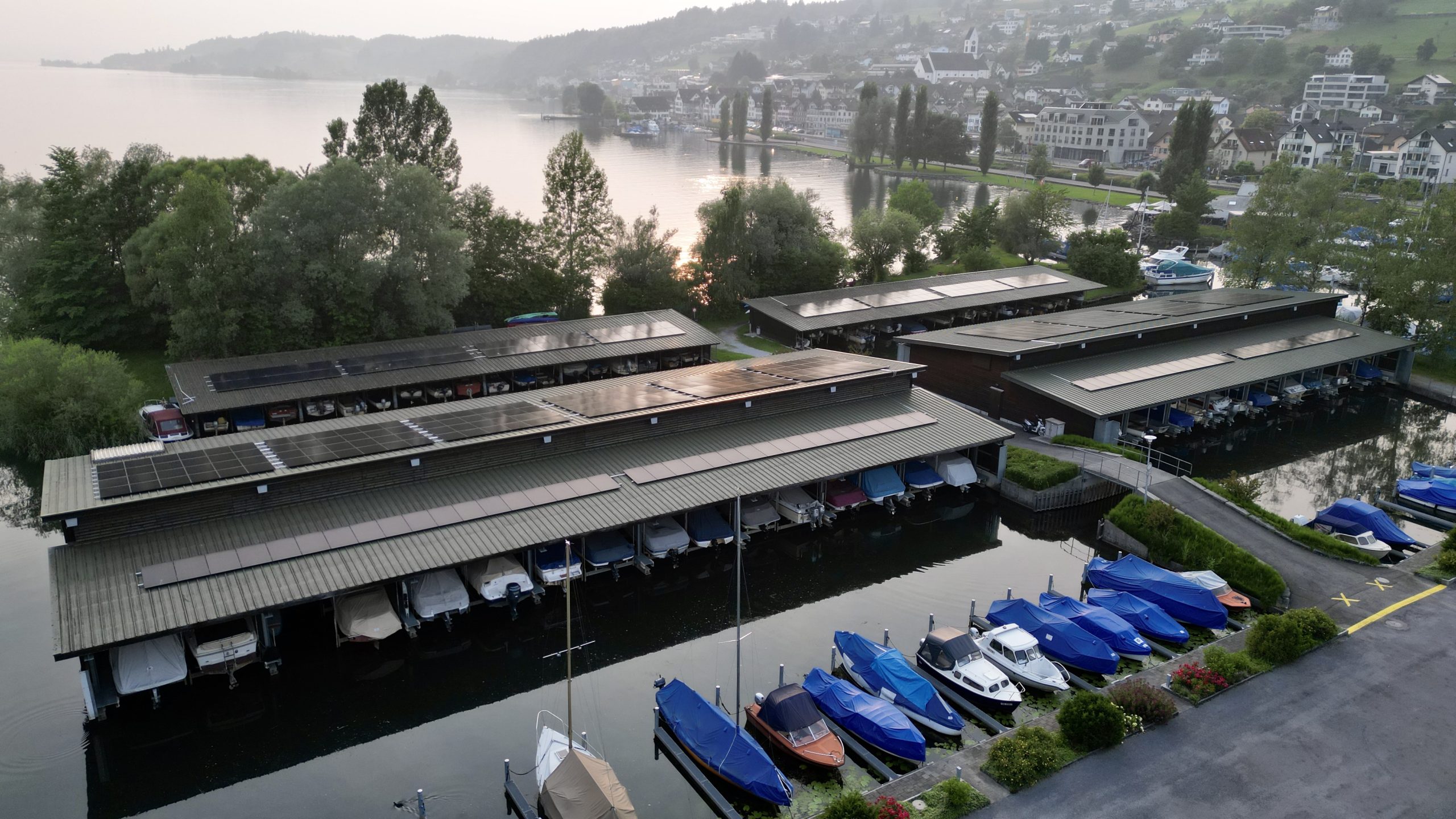 Die Ortsgemeinde Schmerikon hat das Potenzial der Bootshallendächer gezielt genutzt. Die vier Hallen mit einer Gesamtfläche von rund 880 m² boten ideale Voraussetzungen für die Installation einer leistungsstarken PV-Anlage. Die EVS AG aus Schänis war für die Umsetzung verantwortlich und hat das Projekt erfolgreich realisiert.