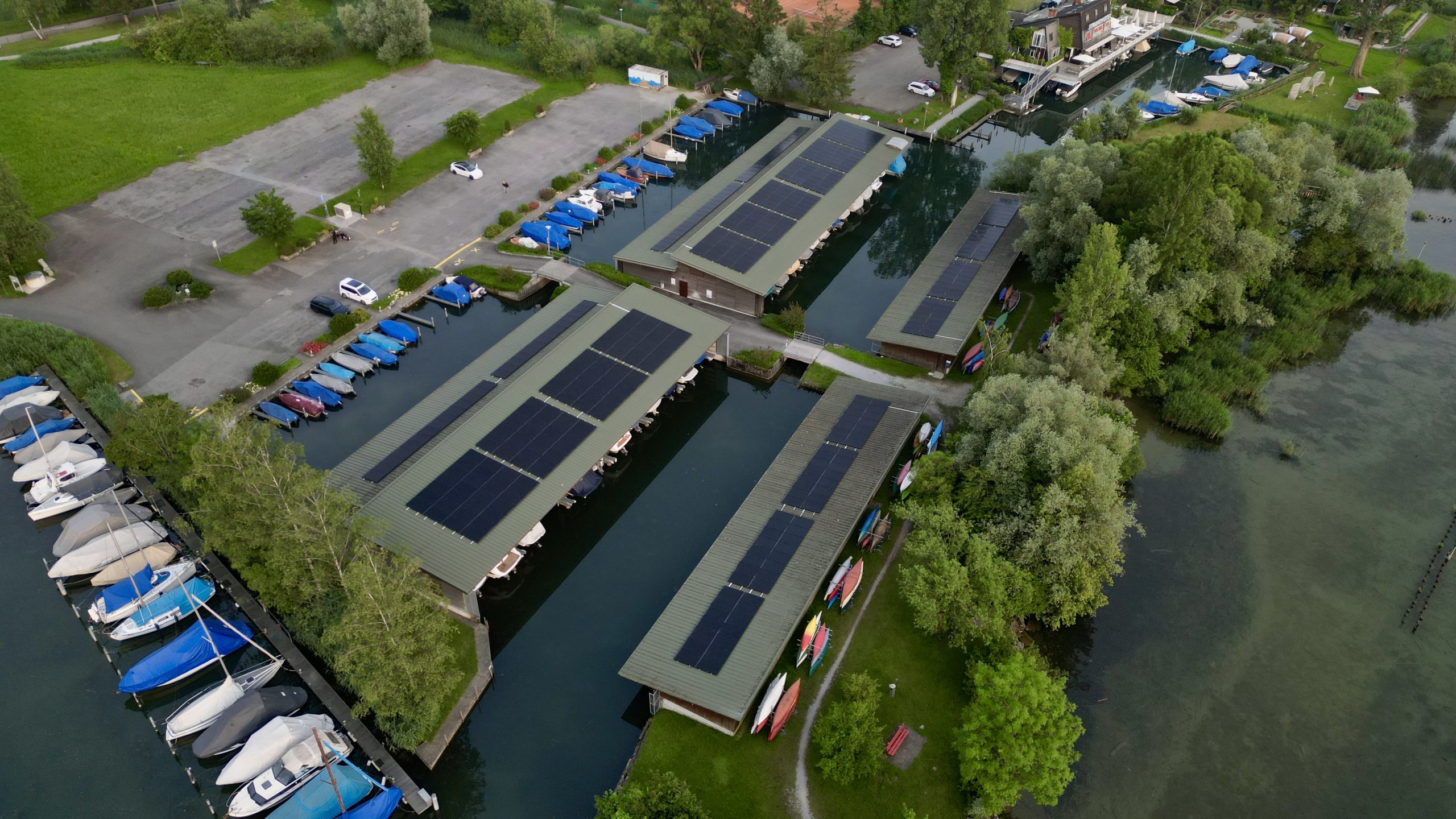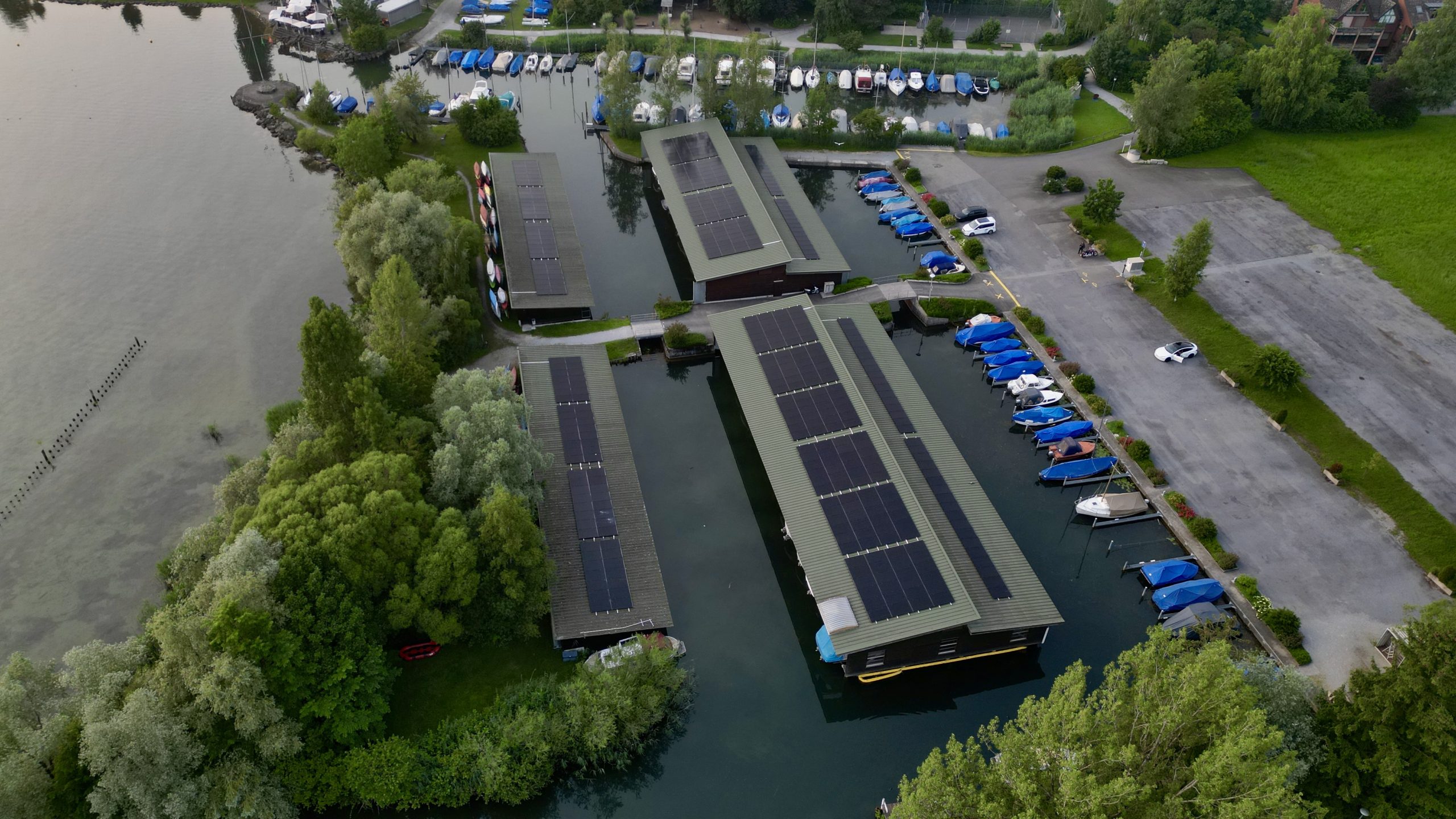 Auf den Dächern der Bootshallen am Seeufer von Schmerikon ist ein modernes Photovoltaik-Projekt entstanden. 440 Module mit einer Spitzenleistung von rund 196 kWp erzeugen dort nun sauberen, lokalen Solarstrom. Film und Fotos zeigen die visuelle Umsetzung des Projekts – von der Gestaltung der Dachflächen bis zur harmonischen Integration in das bestehende Umfeld.